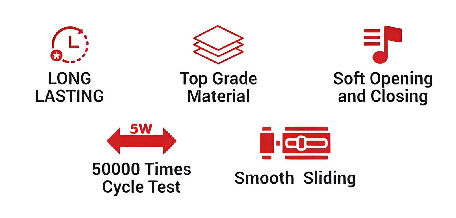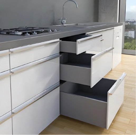 Fashion-forward slim box profile with advanced runner system, soft opening and closing and smooth sliding. Tested for 50,000 cycles.